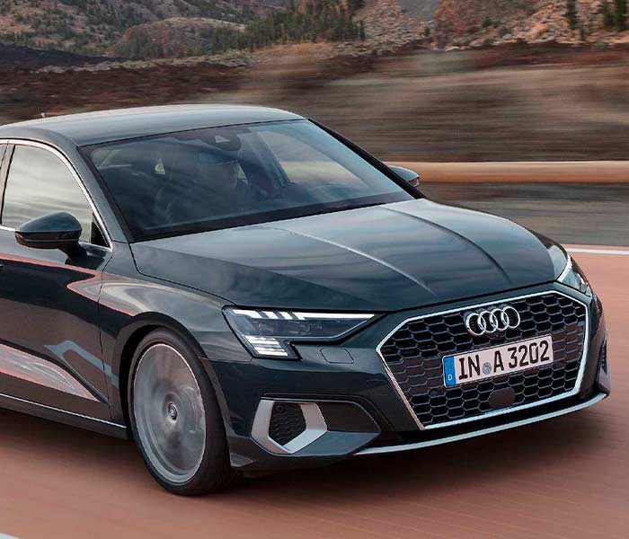 Seu olhar é imediatamente atraído para a admirável grade frontal Singleframe, que ficou mais larga e ganhou design de colmeia. Na lateral, a linha de ombro contínua estende-se até a porta traseira, enfatizando o comprimento do novo Audi A3 Sedan. Para completar o visual marcante, a largura do modelo proporciona uma característica mais esportiva.